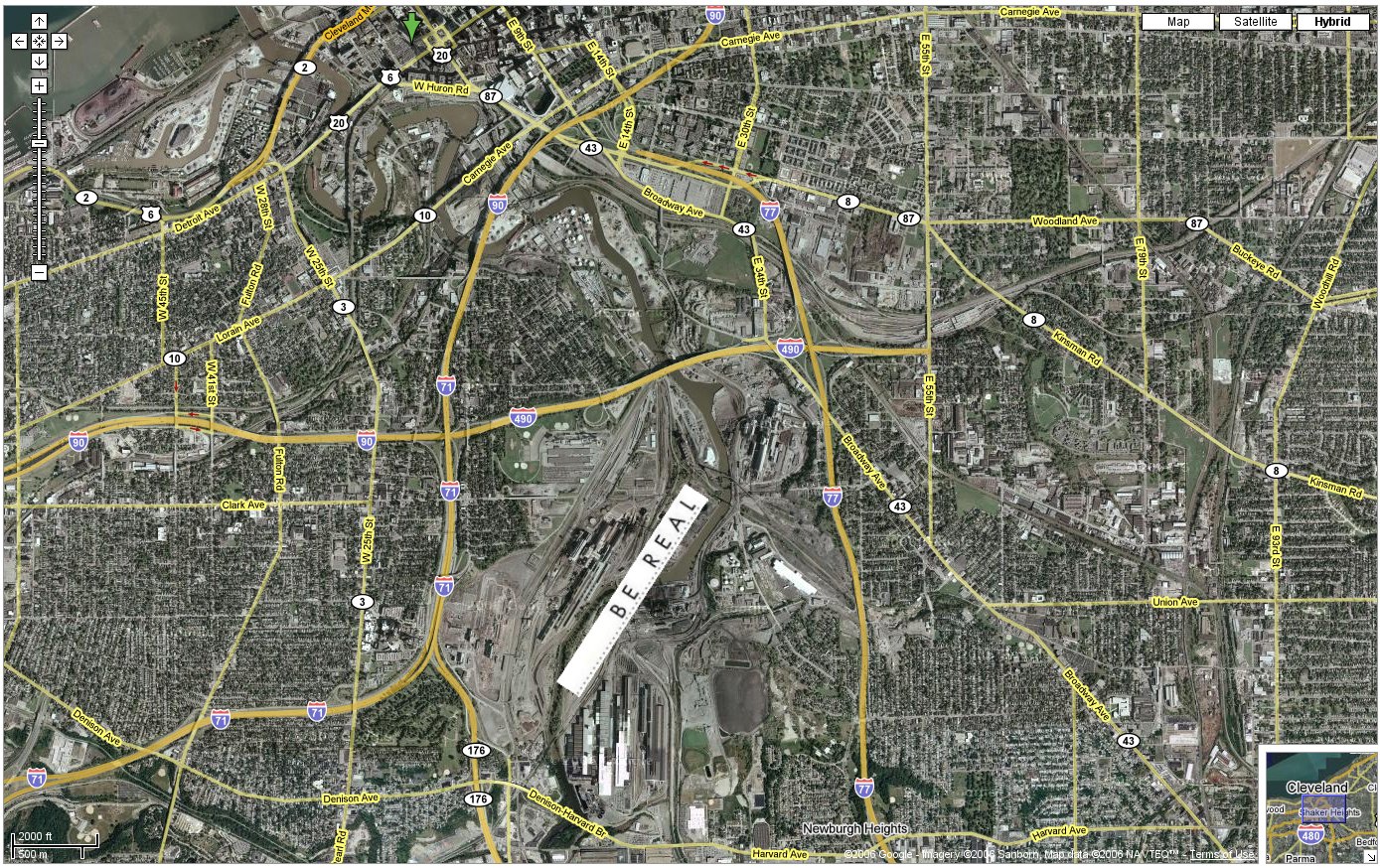 Looking at the tight satellite hybrid map of the Mittal site and surrounding areas above (larger view here - 560k) one sees the neighborhoods most immediately impacted by Cleveland Works fallout, including Cleveland Mayor Jackson's Central and Slavic Village to the east, which seems most in the site's prevailing winds) and up and coming Tremont to the west, where developers build condos literally with views of this ecological disaster. As the population of Cleveland is about 500,000, that is the number of most immediate victims of Mittal. Likely outcomes for those victims are asthma and cancer, which will reduce their life expectancies to some degree, and earning potential, and healthcare costs, and property value.